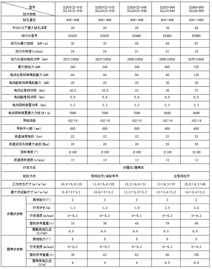 8. 有折疊式油缸起柱方形立柱和主卷揚起柱圓筒形立柱兩種結構供選擇,充分滿足不同客戶的需求。