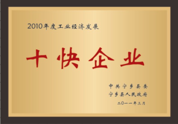 2011年4月5日,獲寧鄉(xiāng)縣委縣政府頒發(fā)的2010年度工業(yè)經(jīng)濟(jì)發(fā)展“十快企業(yè)”獎。